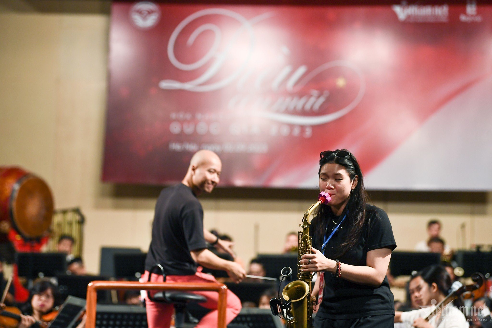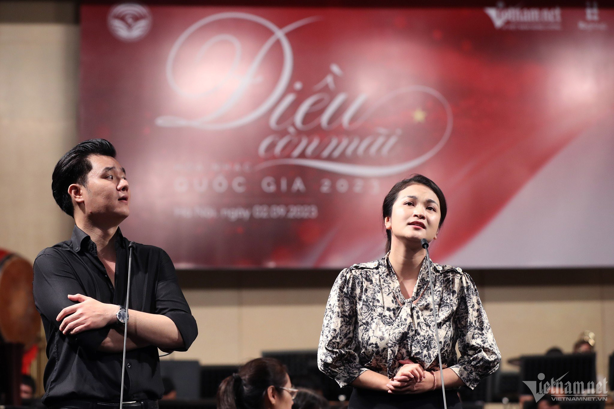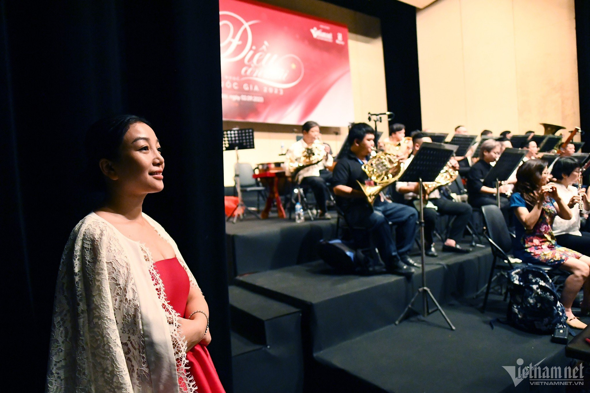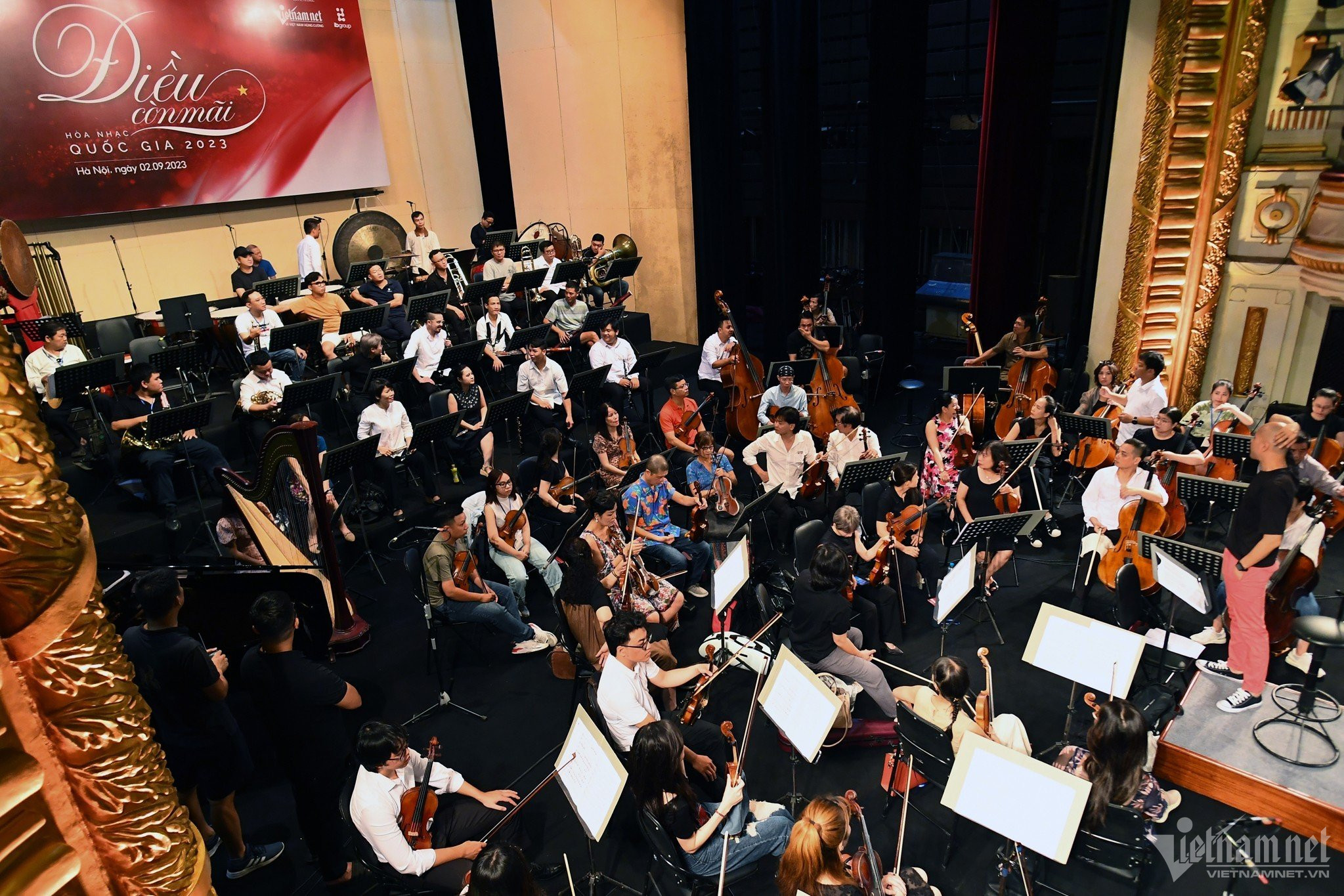 Sáng 2/9, tất cả nghệ sĩ biểu diễn trong Hòa nhạc Quốc gia 'Điều còn mãi' 2023 do Báo VietNamNet tổ chức có mặt tại Nhà hát Lớn để tham gia tổng duyệt, sẵn sàng biểu diễn vào 2h chiều nay.