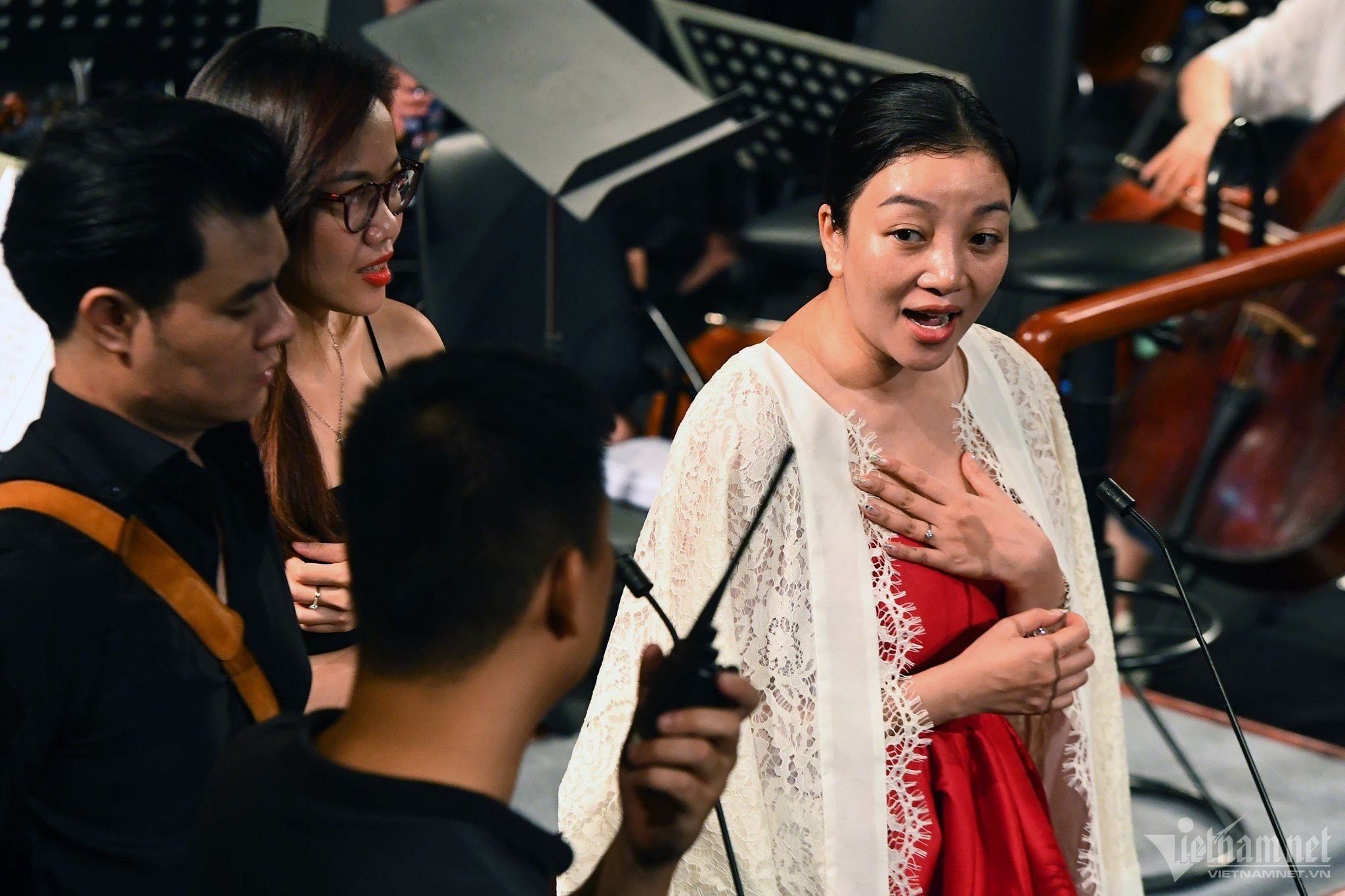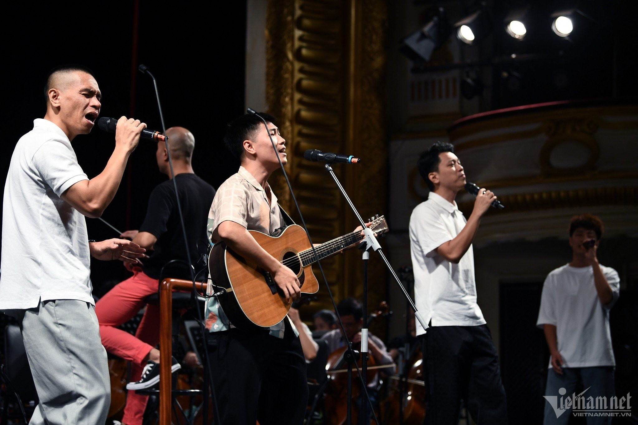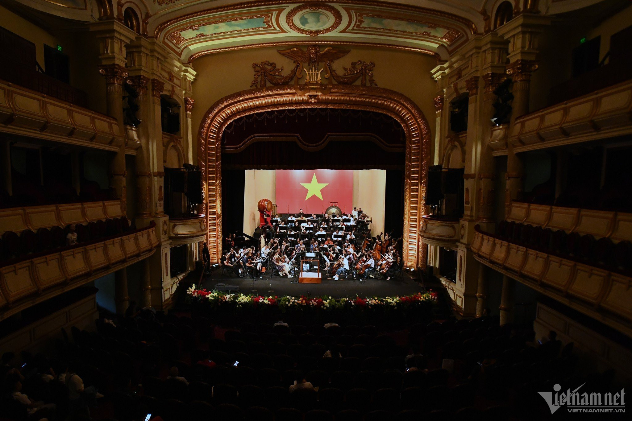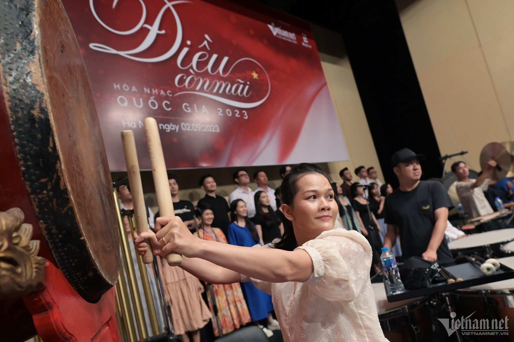 Sáng 2/9, tất cả nghệ sĩ biểu diễn trong Hòa nhạc Quốc gia 'Điều còn mãi' 2023 do Báo VietNamNet tổ chức có mặt tại Nhà hát Lớn để tham gia tổng duyệt, sẵn sàng biểu diễn vào 2h chiều nay.