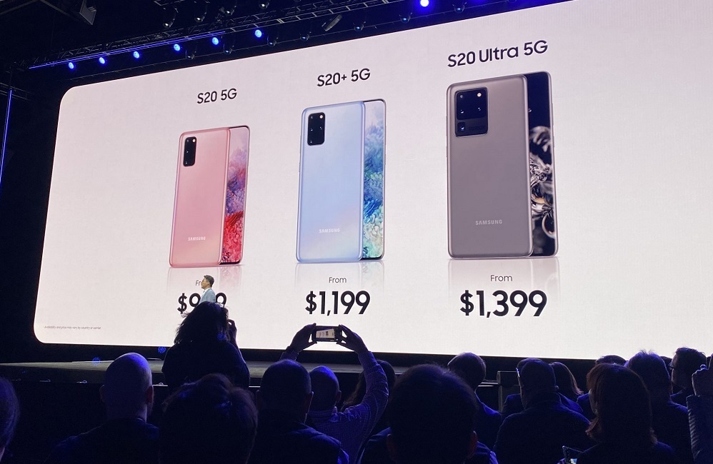 Galaxy S20 có giá 999 USD. Máy trang bị 3 camera phía sau và một camera selfie phía trước, pin 4000 mAh và màn hình AMOLED 6,2 inch với tốc độ làm mới màn hình 120 MHz. Với mức giá 1.199,99 USD, Galaxy S20 + có bốn camera phía sau, pin 4500 mAh và màn hình AMOLED 6,7 inch. Galaxy S20 Ultra cao cấp nhất với giá bán lẻ 1.399,99 USD, có bốn camera phía sau với khả năng zoom tiên tiến, pin 5000 mAh và màn hình 6,9 inch.