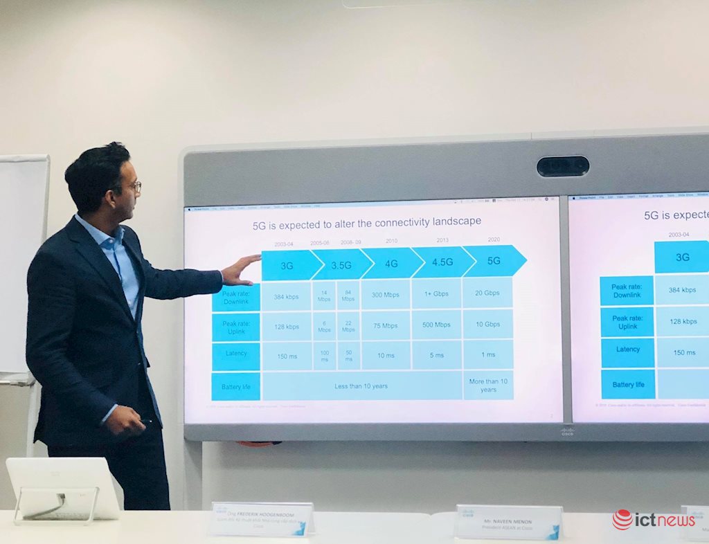 Cùng với Singapore, Việt Nam là quốc gia triển khai mạng 5G sớm nhất trong khu vực ASEAN. Theo ông Naveen Menon, Chủ tịch Tập đoàn Cisco khu vực ASEAN, Singapore sẽ triển khai mạng 5G từ năm 2020, trong khi đó, Việt Nam dự kiến sẽ vào năm 2021.