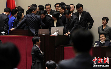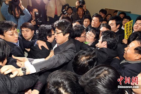 Hôm qua (7/11), tại tòa nhà Quốc hội Seoul, Hàn Quốc đã diễn ra một màn “đấu võ” giữa các Nghị sỹ.