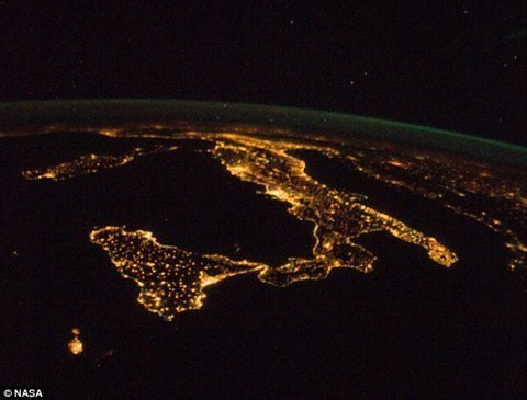 Những bức ảnh do NASA chụp các thành phố từ độ cao trên 240 dặm vào ban đêm có một vẻ đẹp lạ kỳ. Cũng từ độ cao đó, người ta có thể nhìn thấy nước Ý trong hình hài đúng của một chiếc ủng.