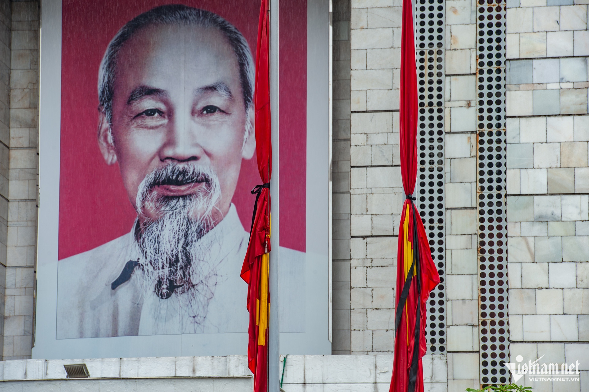 6h sáng, lá cờ quen thuộc trên Quảng trường Ba Đình bắt đầu được treo rủ.