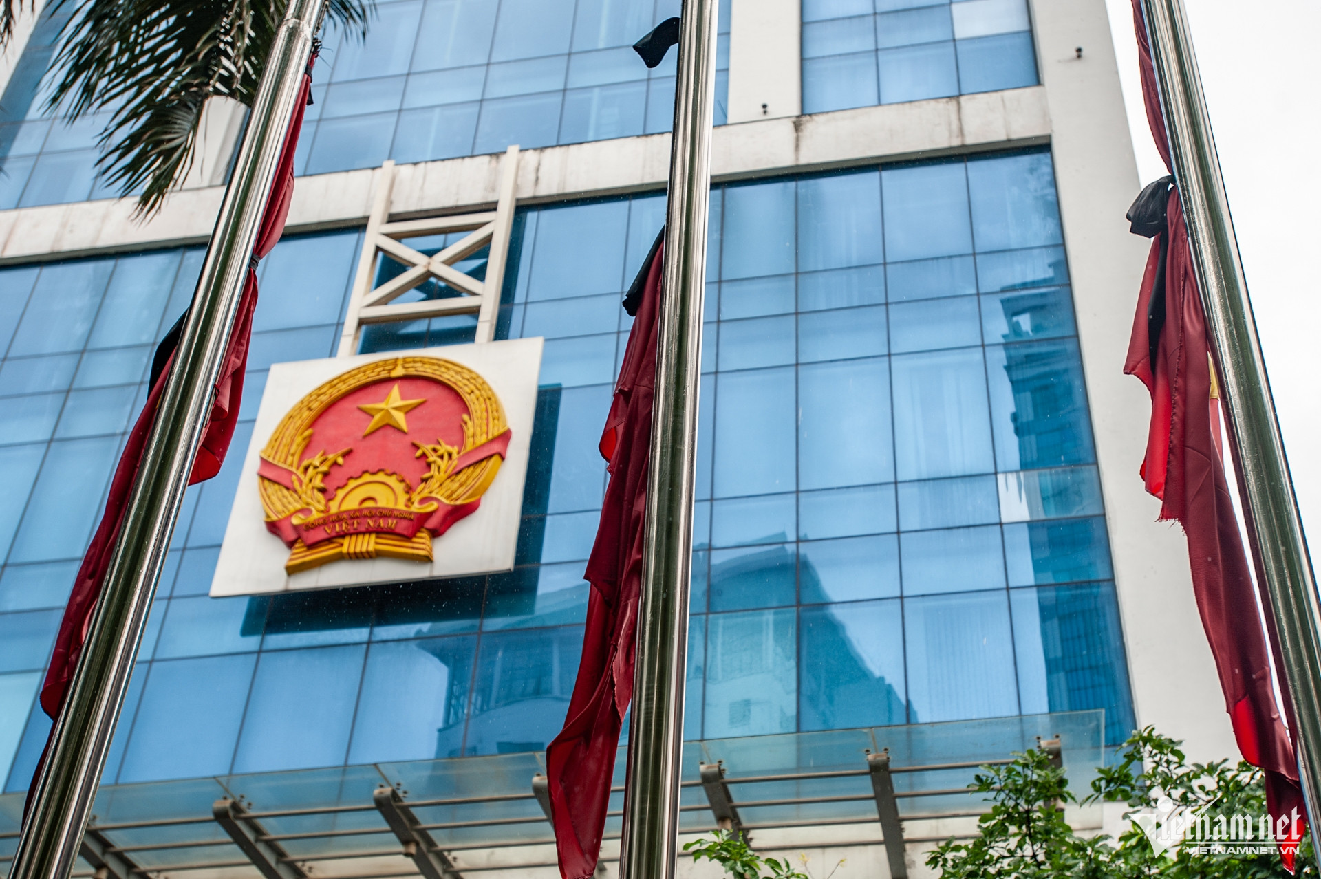 Cờ rủ tại trụ sở UBND TP Hà Nội trên phố Đinh Tiên Hoàng, quận Hoàn Kiếm cũng được treo cùng thời điểm.