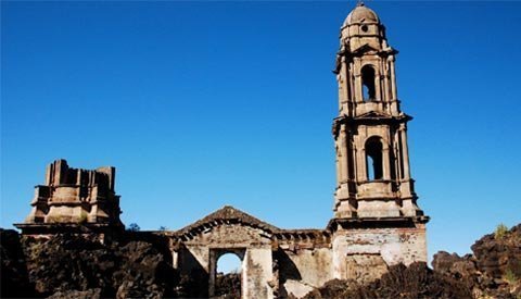 Bí ẩn: Tháp chuông của Nhà thờ San Juan Parangaricutiro cũng không hề bị dung nham đụng tới trong khi án thờ của Nhà thờ cũng còn nguyên vẹn.