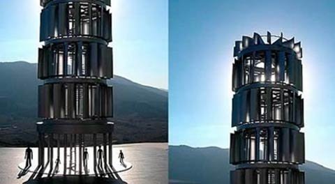 | Là ý tưởng thiết kế bởi kiến trúc sư Michael Jantzen, tòa tháp này là một khái niệm mới về việc sản xuất điện. Phần điện được tạo ra từ tuabin sẽ được dùng để chiếu sáng các tòa nhà vào ban đêm. |