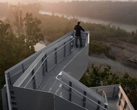 Tòa tháp này nằm ở biên giới giữa Áo và Slovenia với cầu thang được thiết kế