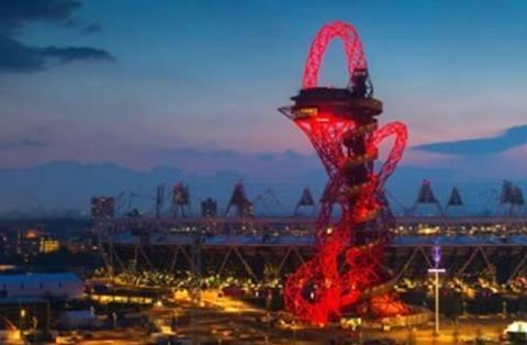 | Tòa tháp Orbit xoắn ốc tại London hiện đã được xây dựng xong. Đây cũng chính là địa điểm có tầm nhìn đẹp nhất của công viên Olympic. |