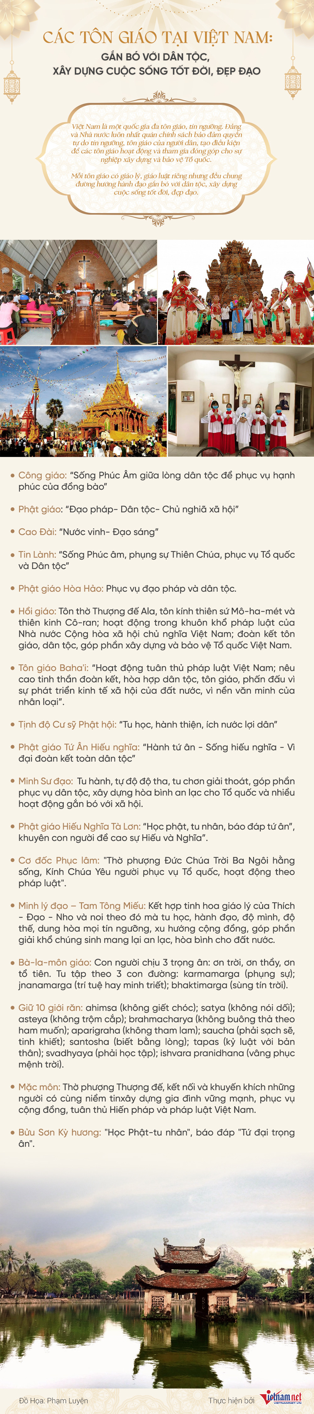 Mỗi tôn giáo có giáo lý, giáo luật riêng nhưng đều chung đường hướng hành đạo gắn bó với dân tộc, xây dựng cuộc sống tốt đời đẹp đạo.
