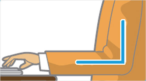 1. Luôn giữ cho cánh tay tạo thành góc vuông ở khuỷu tay trong toàn bộ thời gian sử dụng bàn phím và chuột phía trước màn hình máy tính.