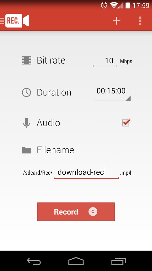 Rec. là ứng dụng có giao diện đẹp, hiện đại, cho phép quay video trong 1 giờ và thậm chí là hỗ trợ thu lại âm thanh. Nhưng lưu ý rằng ứng dụng chỉ thu âm thanh từ microphone chứ không phải âm thanh hệ thống. Ứng dụng này có thể chạy ngầm và bạn có thể dùng để quay lại gameplay khi chơi game trên Android. Rec. quay được các video có tốc độ khung hình 30fps.