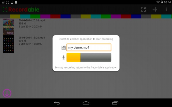 Nếu vẫn đang dùng phiên bản Android "cũ kỹ" này, thì Recordable là ứng dụng phù hợp nhất với bạn. Recordable chính là ứng dụng quay video màn hình có khả năng tương thích với nhiều phiên bản Android nhất: chạy được trên các máy dùng từ Android 2.3 Gingerbread trở lên; đồng thời nó không yêu cầu phải root máy. "Điểm yếu" duy nhất đó là nhà phát triển Recordable yêu cầu người dùng trả khoản phí 50 ngàn đồng để sử dụng. Ngoài ra, nó cũng không ghi lại được âm thanh hệ thống mà chỉ lưu lại được âm thanh từ micro. Dù vậy, nếu smartphone của bạn đang sử dụng một phiên bản Android mới hơn như Android 4.4 KitKat, bạn có thể bỏ qua Recordable và tìm tới các phương pháp thay thế bên dưới.