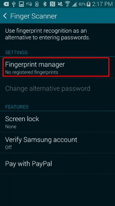 Cảm biến dấu vân tay của Galaxy S5 rất thuận tiện cho các mục đích bảo mật. Tương tự với iPhone 5S, cảm biến này được tích hợp vào nút Home ở dưới màn hình. Nó quét dấu vân tay của bạn và sử dụng thông tin đó để mở khóa điện thoại, đăng nhập vào tài khoản Samsung hoặc thực hiện thanh toán qua Paypal. Dưới đây là cách cài đặt tính năng cảm biến dấu vân tay trên Galaxy S5.