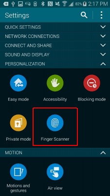 2. Nhấn vào Finger Scanner trong mục Personalization.