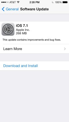 4. Nhấn “Download and Install” ở bên dưới thông báo cập nhật iOS 7.1.