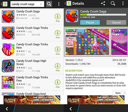Vậy là bạn đã cài đặt xong kho ứng dụng Android là 1Mobile Market. Trên điện thoại BlackBerry Z10 của bạn sẽ có 1 biểu tượng của kho ứng dụng này. Chọn mở kho ứng dụng để bắt đầu tìm và cài đặt các ứng dụng theo ý của bạn. Ví dụ: để tìm và cài đặt trò chơi “Candy Crush Saga”, bạn thực hiện các bước dưới đây: