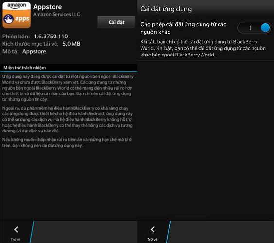 b. Tiếp tục chọn “Cài đặt” để cài kho ứng dụng “Amazon Appstore” lên Z10. Khi thông báo xin quyền truy cập của ứng dụng hiện ra, bạn chọn “Chấp nhận”. Khi kho ứng dụng này được cài đặt xong, nút “Mở” sẽ xuất hiện.