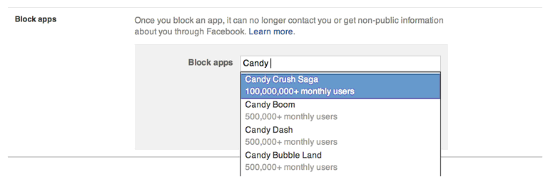 Ngoài chặn một người cụ thể, Facebook cho phép bạn chặn các ứng dụng. Ở phần cuối mục Chặn, chỉ cần gõ tên ứng dụng bạn muốn chặn là xong. Từ nay, ứng dụng này không thể nào truy cập thông tin Facebook của bạn và bạn cũng không còn nhận được lời mời từ chúng nữa.