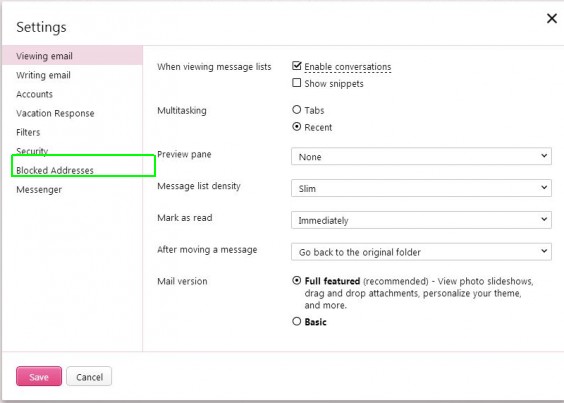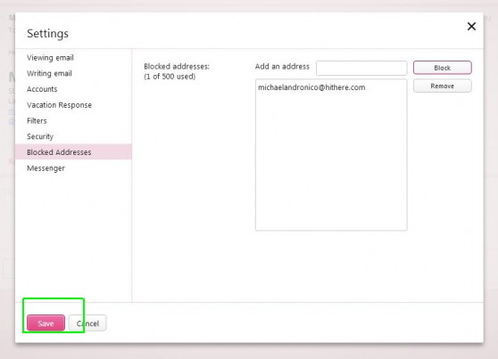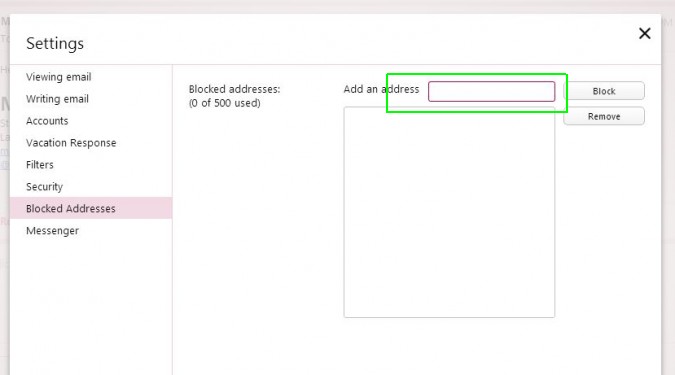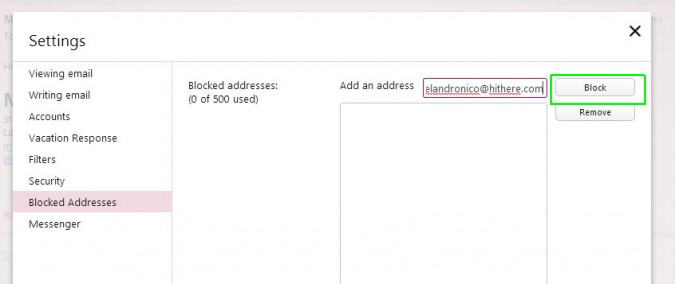 Sau khi bạn thêm một địa chỉ email và danh sách bị chặn, bạn sẽ không nhận được email từ địa chỉ đó. Bạn có thể hủy chặn một người bằng cách chọn tên người đó trong danh sách bị chặn, rồi nhấn vào nút “Remove” ở phía bên phải.