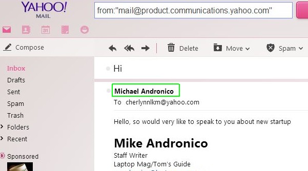 Bước 3: Nhấn vào tên của người gửi ở trên đầu thư.