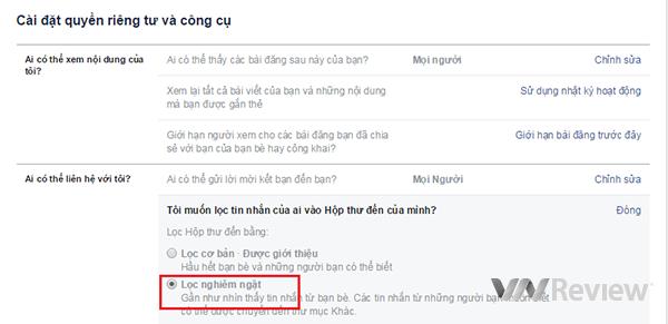 Sau đó bạn cần chỉnh sửa tại mục 'Lọc tin nhắn' từ 'Lọc cơ bản' sang 'Lọc nghiêm ngặt'. Sau khi chỉnh sửa tại mục này, tài khoản Facebook của bạn chỉ có thể nhận được tin nhắn từ bạn bè. Tất cả các tin nhắn từ người gửi không có trong danh sách bạn bè sẽ được chuyển về mục 'Khác' trong giao diện tin nhắn.