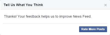 Click vào nút màu xanh “Rate More Posts”, bạn sẽ lại tiếp tục có 15 câu hỏi khảo sát nữa. Tuy nhiên, có lẽ bạn không cần tiếp tục nếu không mấy hứng thú. Trải qua 15 câu hỏi khảo sát đầu tiên đã giúp News Feed của bạn cải thiện hơn rất nhiều.