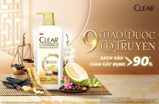 ![]() Thấu hiểu nhu cầu về tóc của phụ nữ Việt Nam, cũng như kế thừa những kiến thức cổ truyền, Clear đúc kết từ kho tàng dược liệu dân gian ra 9 thành phần tinh túy, dành riêng cho tóc như: nhân sâm, bồ kết, vỏ bưởi, dâu tằm, hoa kim ngân, hoa lan, tràm trà, cỏ mực, quả bách xù. Từ đó cho ra đời sản phẩm mới - Dầu gội Clear 9 Thảo dược cổ truyền, giúp tóc sạch gàu từ gốc, ngăn gàu tái phát (theo kết quả kiểm nghiệm đối với vảy gàu nhìn thấy được trên tóc và da đầu khi dùng thường xuyên), đồng thời giảm gãy rụng hơn 90% (so với dầu gội không chứa chất xả, trong điều kiện thí nghiệm). |