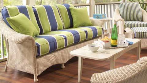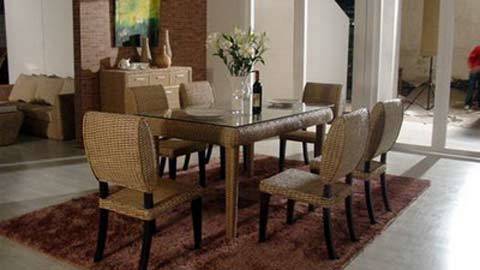 Tại phòng khách, một bộ bàn ghế salon bằng mây đi kèm gối nệm trang nhã, kết hợp các loại giá nhỏ để sách báo, vật dụng trang trí... sẽ làm cho căn phòng trở nên thân mật, gần gũi nhưng cũng không kém phần sang trọng. Với chất liệu bằng mây, bộ bàn ghế này còn đem lại cảm giác êm ái, nhẹ nhàng cho người sử dụng.