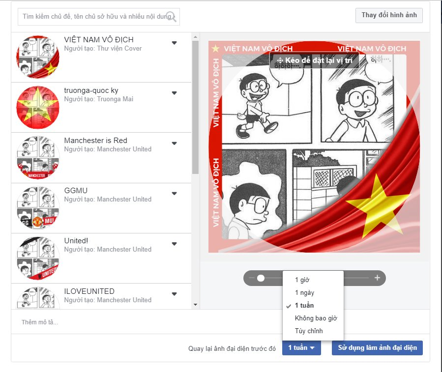 Với chiến thắng 1-0 ở trận lượt về, Việt Nam đã thắng Malaysia 3-1 chung cuộc và trở thành nhà vô địch AFF Suzuki Cup 2018. Không chỉ đăng các hình ảnh chúc mừng đội tuyển Việt Nam, người dùng Facebook còn đổi ảnh đại diện (avatar) để ủng hộ. Nếu bạn chưa biết cách làm, hãy xem hướng dẫn dưới đây: