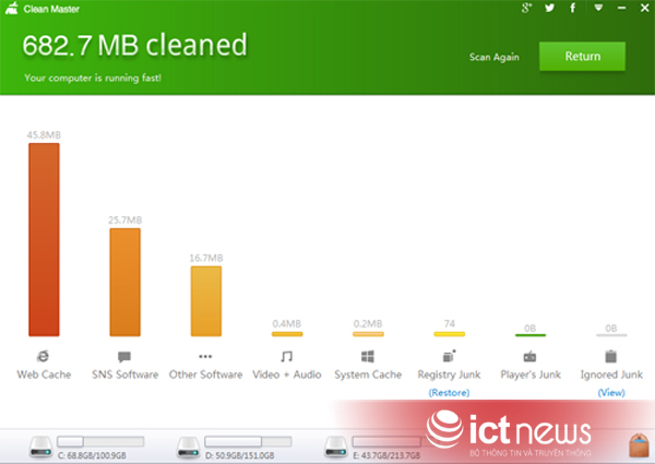 Hiện nay có nhiều phần mềm bên thứ ba có thể giúp bạn thực hiện điều này, một trong số đó là Clean Master - công cụ đã quá nổi tiếng trong cộng đồng người dùng Android và iOS, và hiện nay nó đã có phiên bản dành cho Windows.