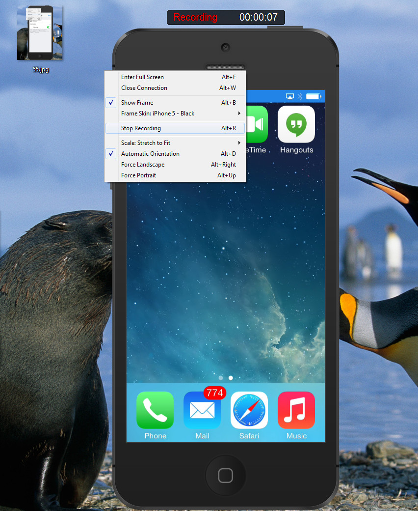 8. Hãy thao tác trên màn hình iPhone hoặc iPad, ghi lại những gì muốn ghi và sau khi hoàn tất, nhấn chuột phải vào hình ảnh iPhone, iPad trên máy tính một lần nữa và chọn “Stop Recording”. Video sẽ được lưu lại và bạn đã hoàn thành công việc của mình.
