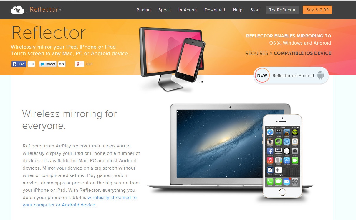 1. Hãy truy cập trang web của Reflector. Nhấn nút “Truy Reflector” để dùng thử hoặc nhấn nút “Buy 12,99 USD” để mua phiên bản đầy đủ của ứng dụng.