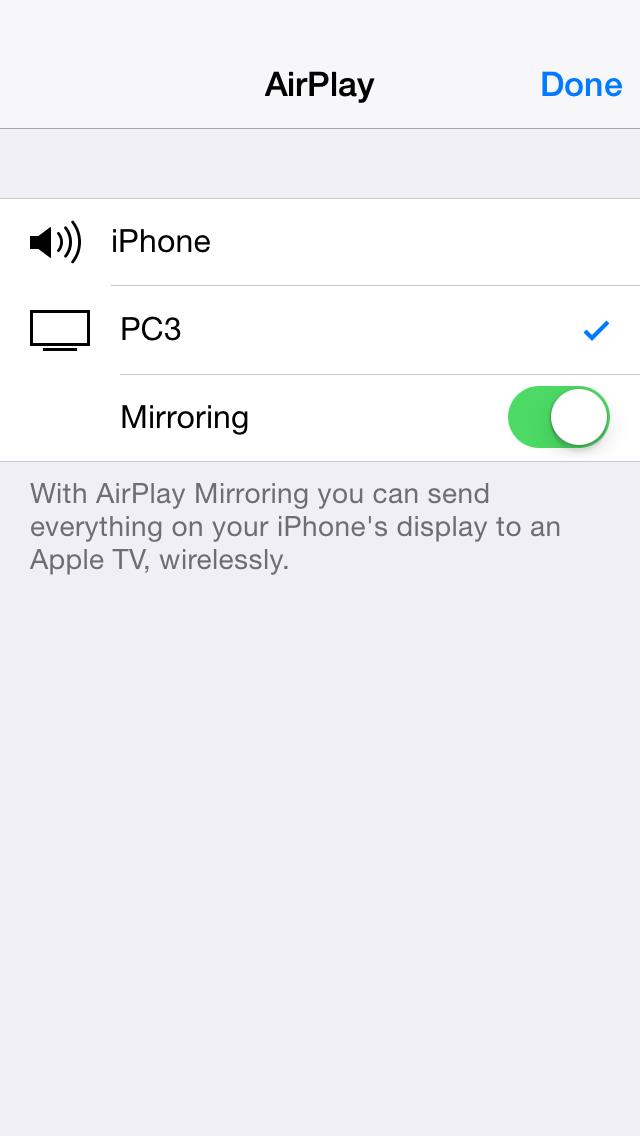 6. Bật tính năng “Mirroring” trong menu AirPlay.