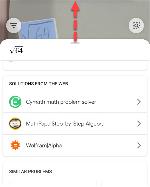 Bước 4: Nếu đáp án và các bước giải bài tập của Google không đầy đủ hoặc đơn giản Google không thể tìm ra giải pháp, bạn có thể kéo thẻ lên để hiển thị toàn bộ kết quả tìm kiếm và tìm lời giải từ các nguồn khác.