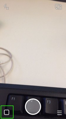 Bước 2: Trong ứng dụng đã được cập nhật, khi mở Snapchat bạn sẽ thấy camera được khởi động. Hãy tới hộp thư đến bằng cách nhấn vào hình vuông ở bên trái nút chụp ảnh ở cuối trang.