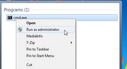 Nếu đang dùng Windows 7 hoặc Vista, mở menu Start rồi gõ “cmd.exe” trong hộp tìm kiếm. Khi kết quả hiển thị, nhấp phải chuột vào cmd.exe rồi chọn Run as administrator.
