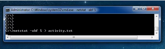 Tại command promt, gõ lệnh sau rồi nhấn Enter: “netstat -abf 5 > activity.txt”.