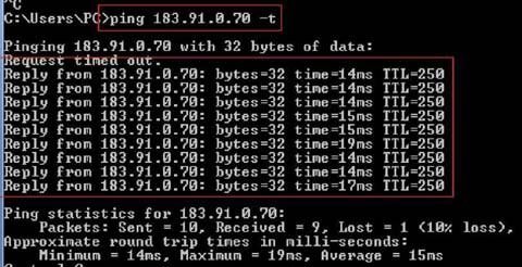 Gõ ping 183.91.0.70 –t, xong rồi ấn phím Enter