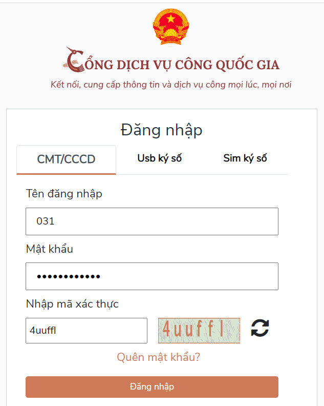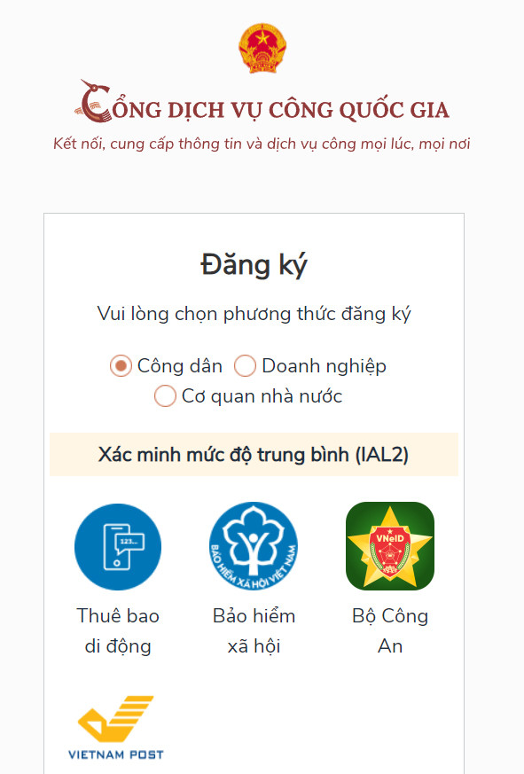Trước tiên, bạn cần có tài khoản Dịch vụ công hoặc có thể đăng ký tại đây.