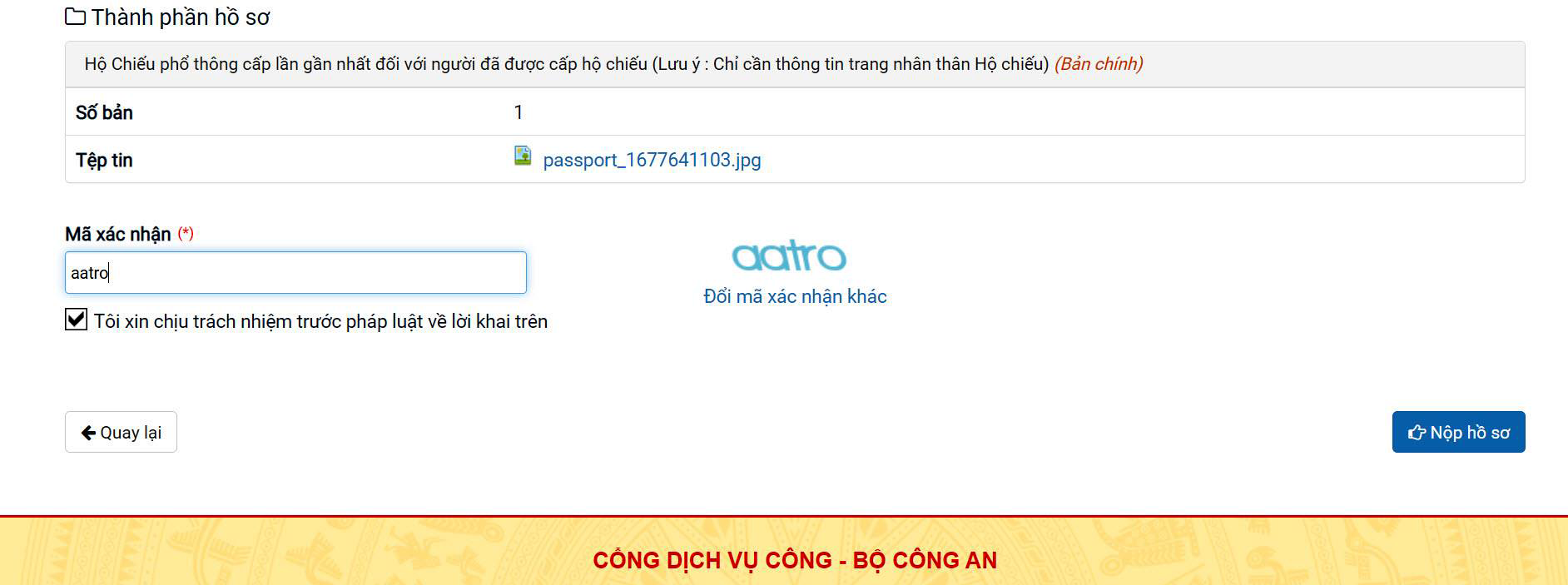 Bạn cũng cần kiểm tra lại một lần nữa các thông tin trước khi bấm Nộp hồ sơ.
