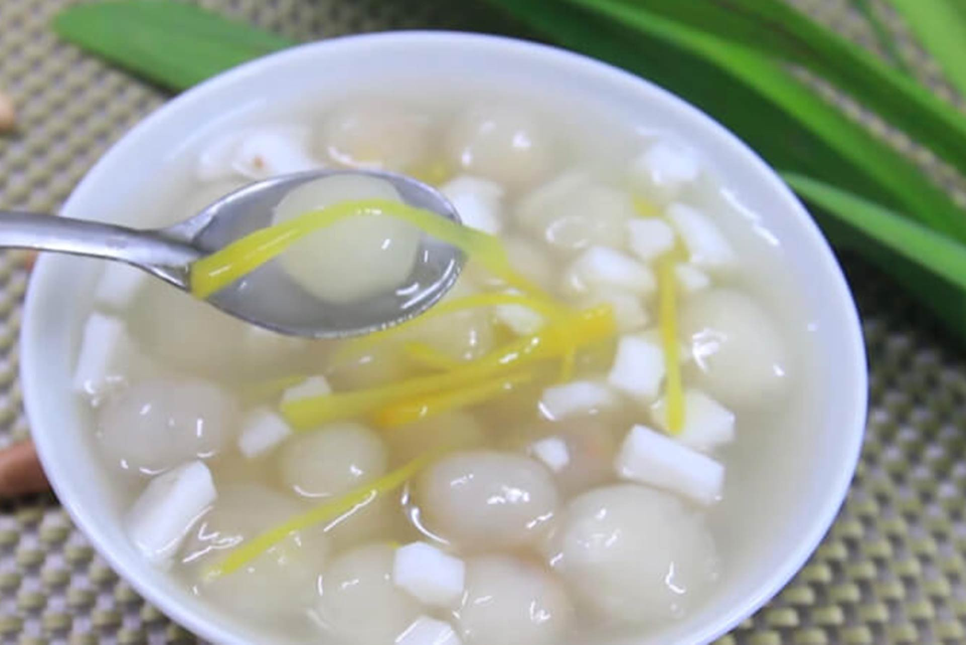 Với món chè bột lọc nhân dừa bạn không nên cho quá ngọt, có thể cho ít nước cốt dừa lên trên khi ăn nếu thích.