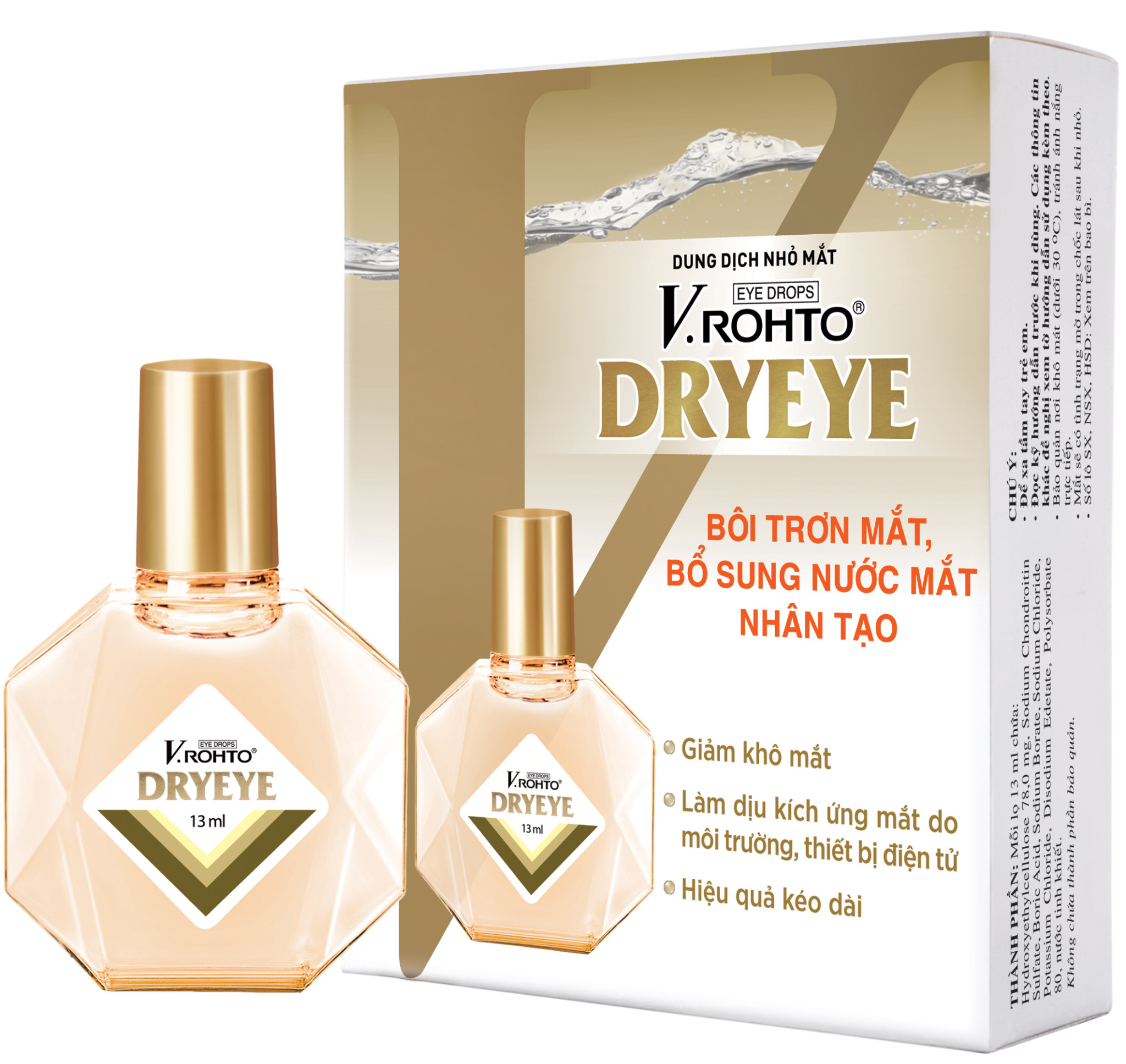 Dung dịch nhỏ mắt V.Rohto Dryeye là sản phẩm chuyên biệt cho tình trạng khô mắt đến từ thương hiệu Nhật Bản Rohto Mentholatum. Dung dịch nhỏ mắt V.Rohto Dryeye chứa hợp chất cao phân tử Hydroxyethylcellulose (HEC) bổ sung nước mắt nhân tạo, giúp tạo độ ẩm cho mắt.