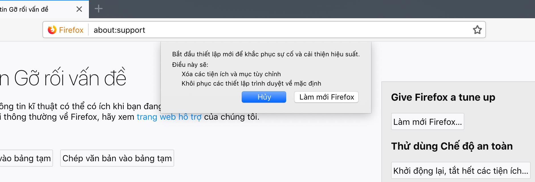 Bạn sử dụng Firefox? Hãy mở trình đơn trình duyệt (nút hình ba thanh ngang ở phía trên góc phải), chọn Help (Trợ giúp), sau đó chọn Troubleshooting information (Thông tin xử lý sự cố). Tiếp theo, bạn chọn Refresh Firefox (Làm mới Firefox) để đặt lại trình duyệt.