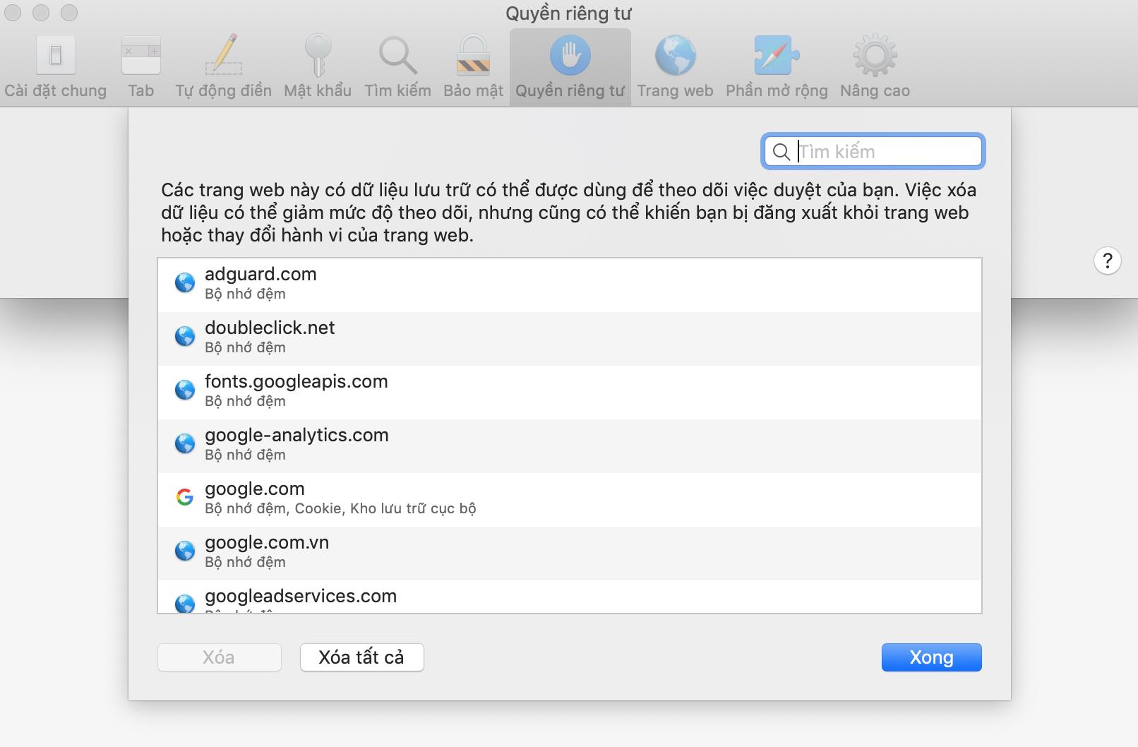 Bạn có thể xóa vĩnh viễn mọi thứ từ lịch sử duyệt web, file và hình ảnh được lưu trong bộ nhớ tạm, cookie và các dữ liệu trang web khác. Thao tác này không ảnh hưởng đến các dữ liệu khác trình duyệt lưu trữ.