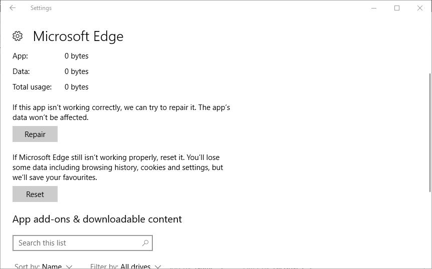 Bấm nút Repair nếu bạn không thể khởi chạy Microsoft Edge, hoặc Reset để xóa dữ liệu Edge đã lưu trên thiết bị bạn đang sử dụng.