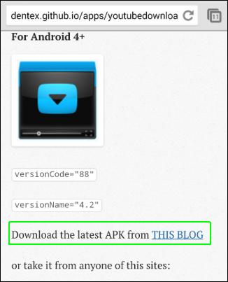 4. Tải ứng dụng YouTube Downloader từ Dentex’s blog trên điện thoại Android.