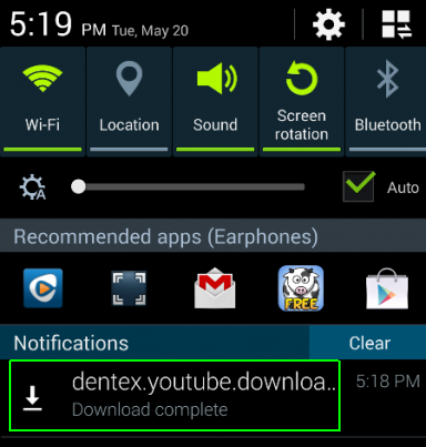5. Nhấn vào thông báo download YouTube Downloader trong ngăn kéo thông báo.