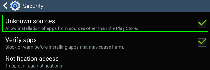 3. Bật “Unknown sources” nếu lựa chọn này chưa được bật. Thiết lập này sẽ đảm bảo bạn có thể cài ứng dụng ngoài Google Play.