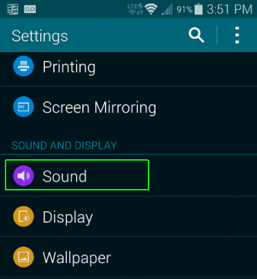 Bước 2: Nhấn vào “Sound” ở mục “Sound and Display”.
