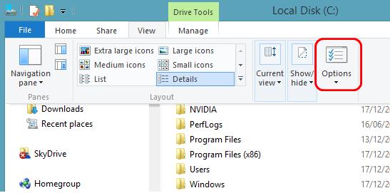 Bước 2: Trong menu View bấm Options
